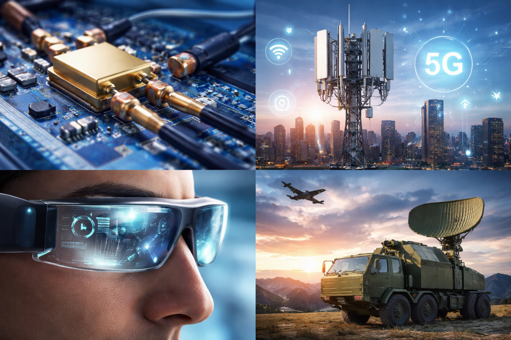 Enables high-frequency and high-power RF components used in communication systems and base stations.